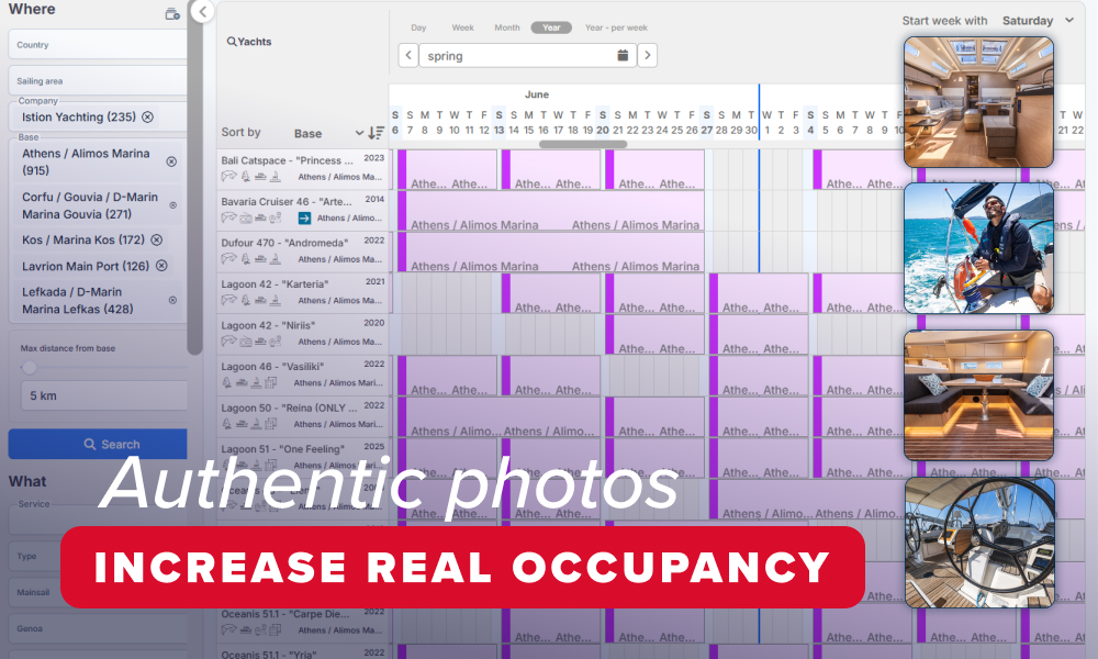 In a busy market, it is common to find numerous yachts of the same make and model available in the same sailing area. When an agent is looking at which yachts to propose to a potential guest, those without decent imagery will go to the bottom of the pile, resulting in fewer sales and more discounting.